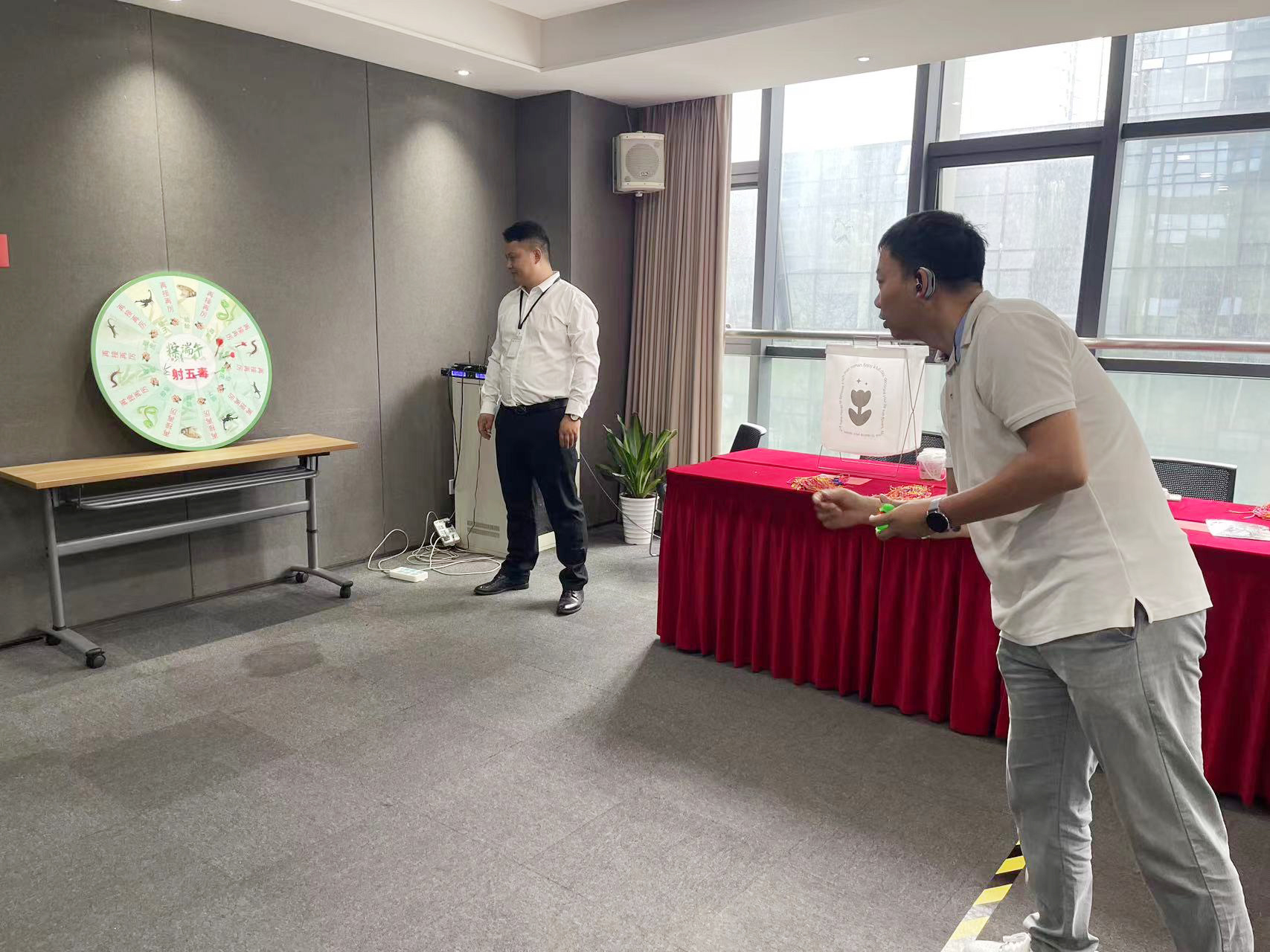 投壺、擲飛鏢、香囊DIY、非遺手工制作等趣味活動輪番上演,深受大家的喜愛,激發了和仁科技小伙伴們廣泛的參與熱情。根據傳統民俗和民間流傳,蝎、蜈蚣、壁虎、蟾蜍、毒蛇被稱為“五毒”,端午節這一天又被民間稱作為“五毒日”,為了預防五毒之害,現場活動中印畫這五種毒物,大家屏氣凝神、投擲飛鏢,以驅除“五毒”防病害。
